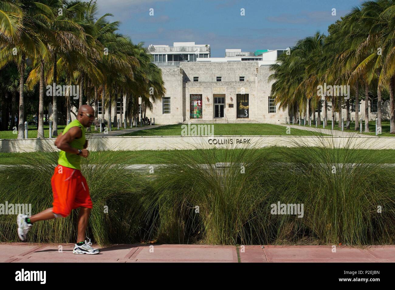 United States Florida Miami Jogger Running In Front Of The Bass Museum On Collins Avenue In The District Of South Beach In Miami Beach Stock Photo Alamy
